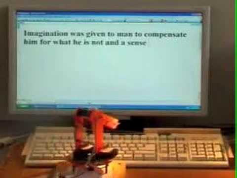 Add speech recognition and this robo-dictation would be fun. Painfully slow and the long way around, but fun. Rube Goldberg-y.