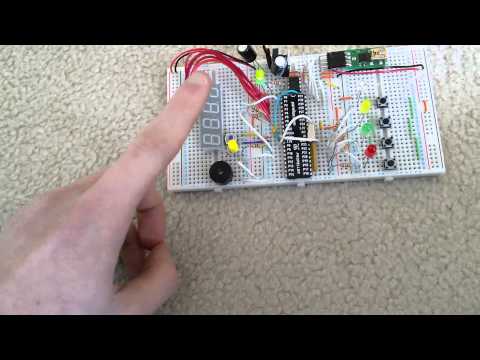 Using the Mims effect of LEDs, I programmed the Propeller to use an LED as a button. The LED turns on when it is touched and off when it is touched again. Ignore all the other circuitry as it is from a game of simon that I didn't want to tear apart. Currently, the "button" is flaky and only responds ~80% of the time. Because there are no moving parts like a conventional button, this will never wear out, but when I turn the light in the room on and off, the button is activated.