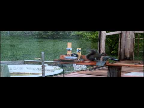 Squirrels are prey animals and have a strong startle reflex. So what really makes them run away is sudden movement and noise. The car alarm test video above only has noise, which is why the squirrel sits there and thinks about if he should leave or not.