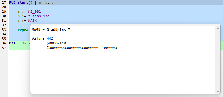 I noticed in the outline view that when you open a VAR section it will tell you the type, but when you open a CON section the values aren't provided. Since the view of the outline and the view of the code editor can be in different places, it might be useful for CON blocks in the outline to display the symbol values when opened.