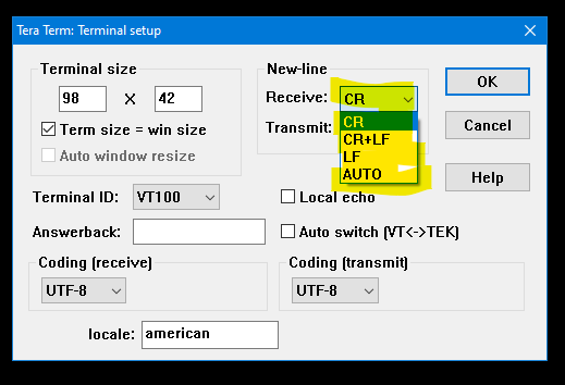I'm using PST mode. For the moment, just open PST so I can watch the data without all the distracting cursor sparkles. Thanks for add the option. I have seen terminals that will treat a CR as a CR or a CR+LF. Maybe that's worth considering, too.