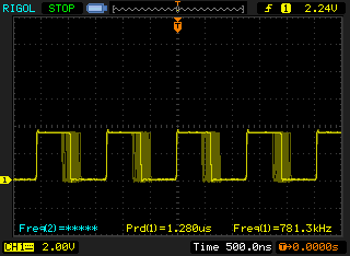Sure I can try them out once I have things stabilized a bit. But definitely try to scope it first to get something that looks decent to test. BTW this particular LCD HW does not seem to need/use DE, so it's probably not a good test of that output signal. It also requires HSYNC and VSYNC to operate, DE alone is no good. I've tried 192, 200, 250MHz P2 frequencies with the above timing and they all seemed to work okay, have not yet tried to find the timing limits. Also I still need to display some genuine bitmap output, static coloured line at a time is not a good test. I can just hack a clock output pin onto my VGA text driver and try it later.