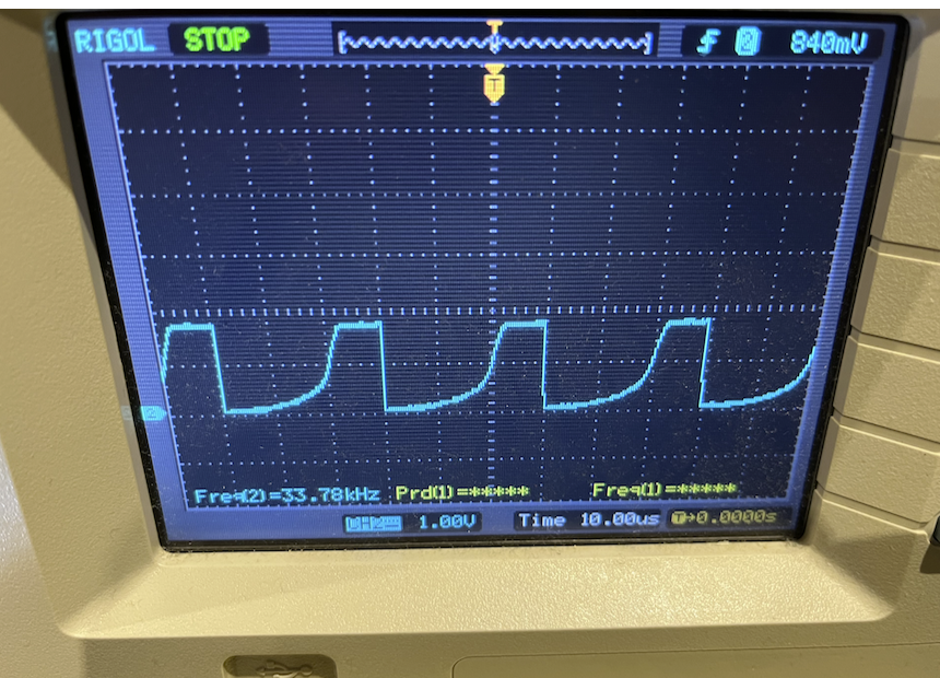 I agree and also noticed that too myself - it's a very strange accelerating non-linear shape vs a normal RC charging curve. As to sub-sampling at 33kHz can't be sure there but I know the capacitive effect of the scope probe itself will certainly affect things as well. Plus I noticed when I changed the cc bits affecting capacitance loads it also affected the frequency in the results yesterday. Got slower when more capacitance was added, as the charge is retained for longer when it tri-states the output.