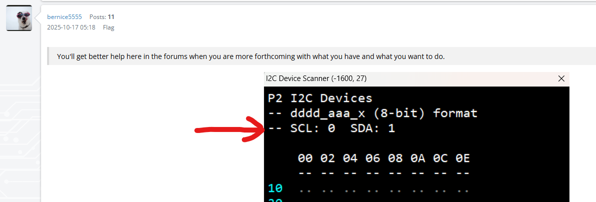 Now.... in my opinion you're still starting out too big. Until you can reliably communicate with your device there is no point building a multi-cog system (which I doubt you actually need) . I don't have that part and am not willing to shell our $32 to buy one, but as a "while I'm having a coffee" exercise I wrote a program for you like I would for myself if I were dealing with that sensor. I put in my own CRC calculator because I missed that you had included one in your code. Both versions work, though mine is about 11x faster because it uses inline assembly versus pure Spin2.