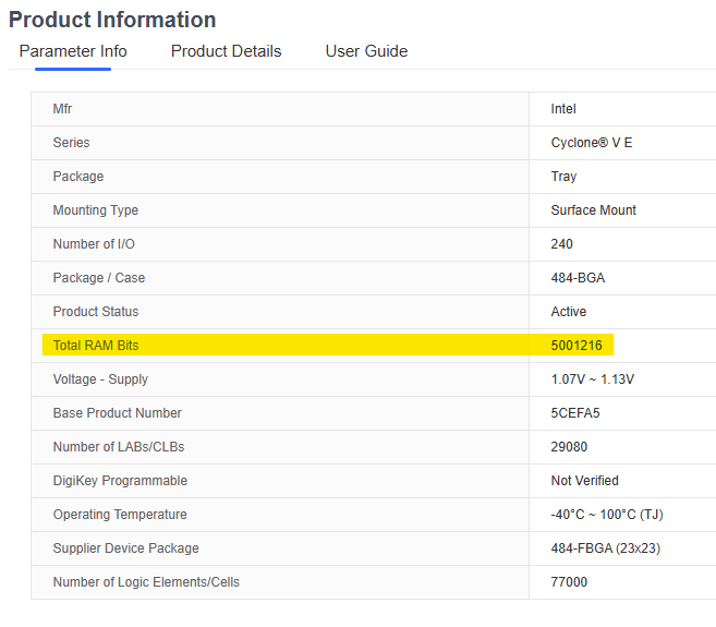 How much on-chip memory does the 5CEFA5F23I7N provide?
