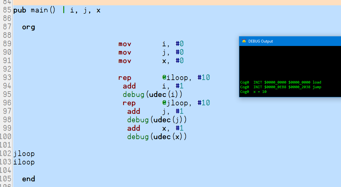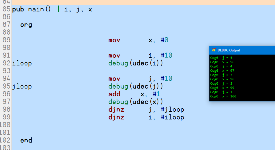 tjz x,#branch_address+4if four repeated instructions. (Just tested this successfully in cog exec.)Of course you can do it if you correct for the looping, but the point is that it doesn't work normally.