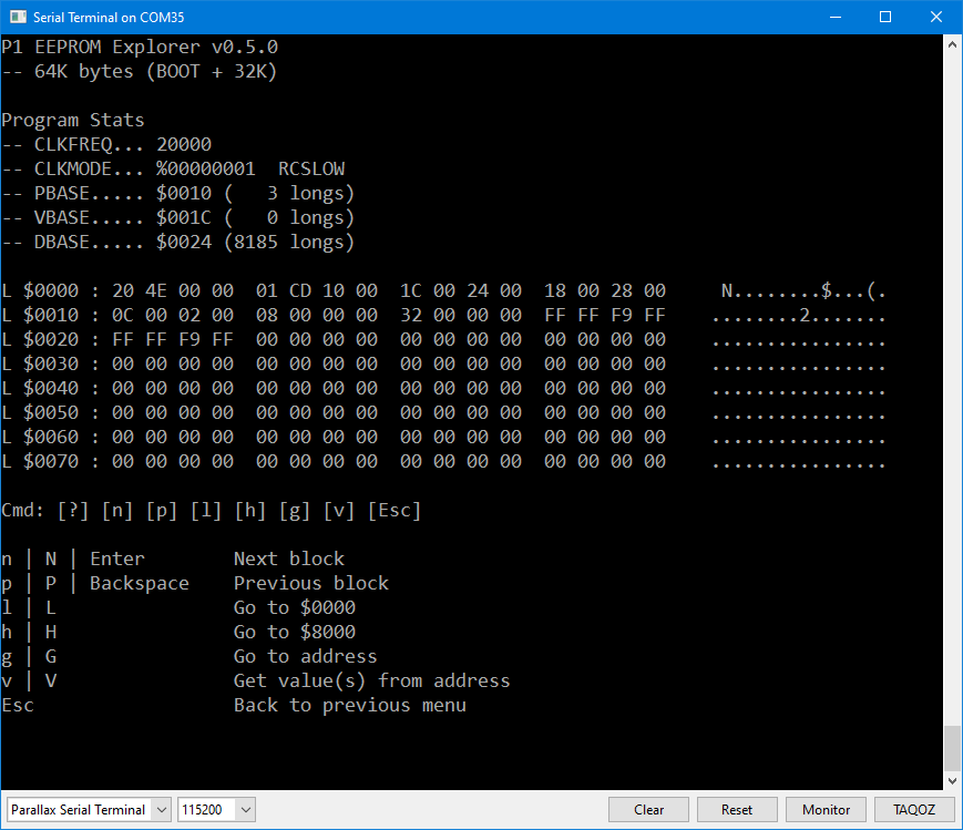 I've participated in a couple of forum threads having to do with the P1 EEPROM, and my current work project uses the upper EE for data. I often knock together little utilities for myself, but none for the EE that I'd release. Given the complexity of my work project and the needs of the community, I made this little explorer.