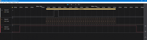In this demo I start up a background Spin2 cog and use smart pin sync_tx to simulate sending one 32-bit value (see screenshot from LA). used a set of jumpers on my Eval board to route signals.