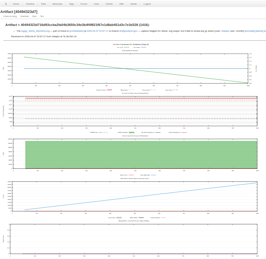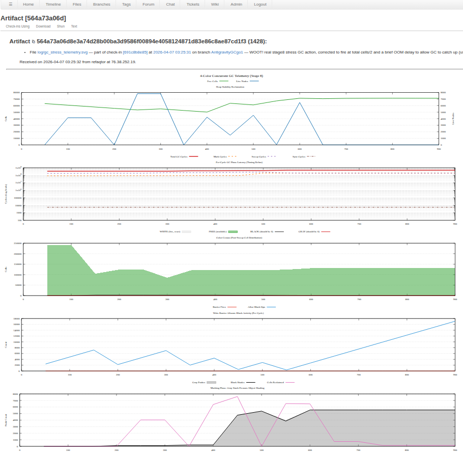 in my Fossil version control repository I am watching the changing plots to see, in this case, when I go from a garbage garbage collector to a working garbage collector on my Lisp system using P2 XBYTE bytecode processor.