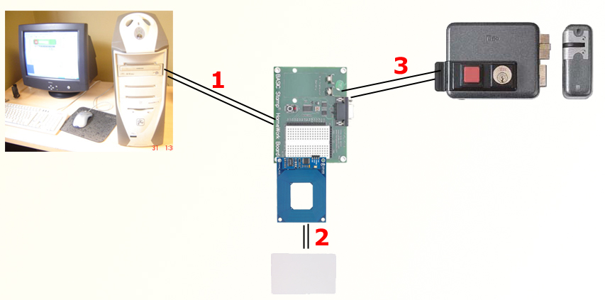 where the stamp would read the card and report to the pc.··The pc would check the db and send back a pass/fail to the stamp which would handle unlocking the door.·