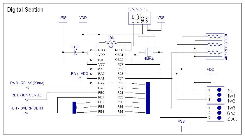 c) * Project is to create a kind of interface to a fish tank level alarm. Currently it lights some indicators and alerts if the water level moves into/out of certain preset levels. My aim is to "intercept " the signal when the vehicle is parking and monitor the level (and also temperatures using a couple of 1-wire sensors). During this time, a relay shunts the existing device to GND via a 100R resistor to make it think all is well and not set off an alert (annoying beeping). Later (phase 2) of the project will add a data logger. Then, we can get the data back at the end of each period and see whats been going on.