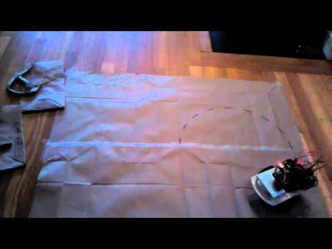 As you can seethe second loop was a bit disrupted by the wheel contacting the edge of the paper. But I am out of paper bags, so I'll have to post this incomplete run. Here's the FORTH code which uses Nick Lordi's robot command language.