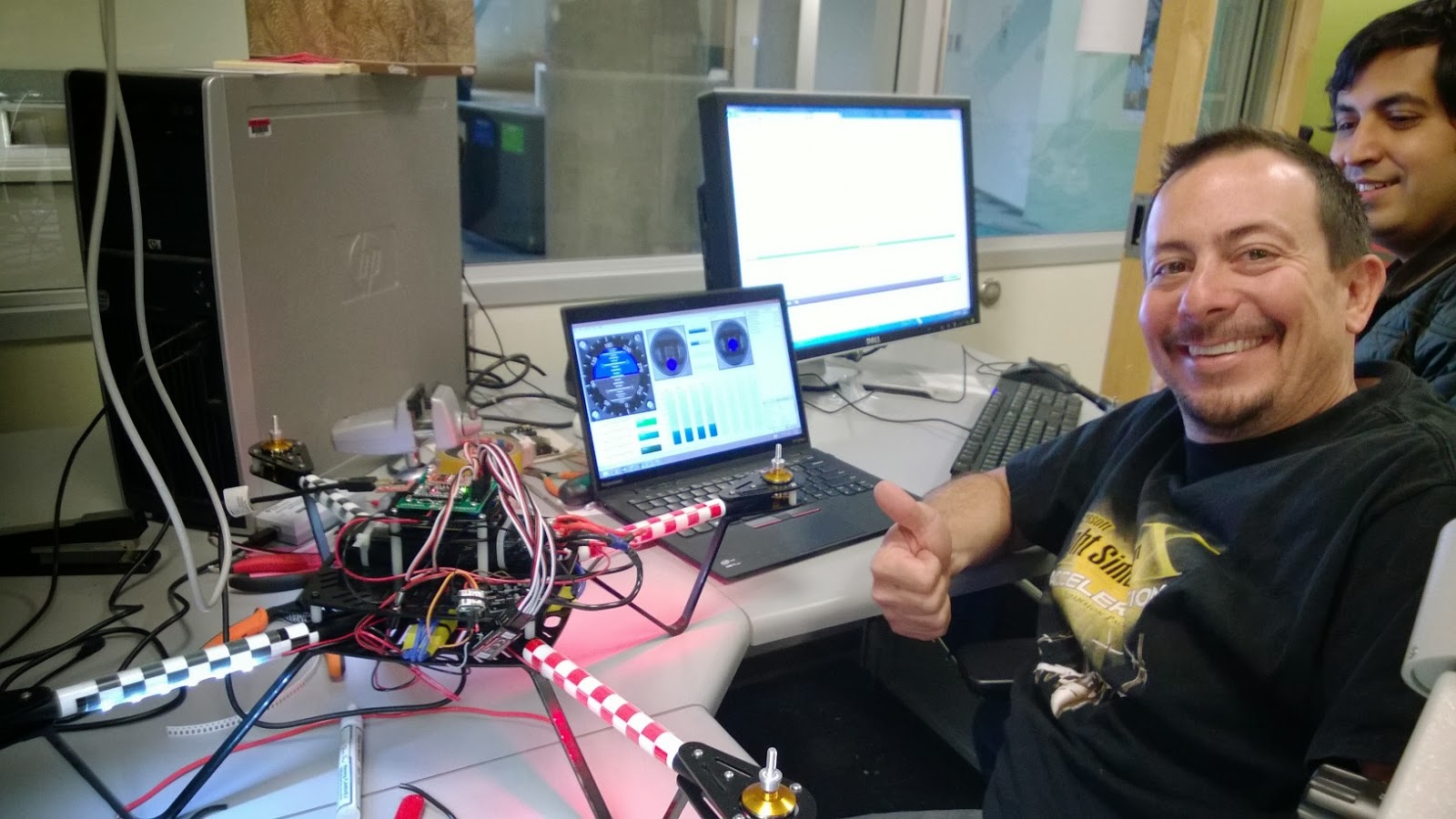 On Day 4, Mike and Ashish test the quadcopter in the lab...
