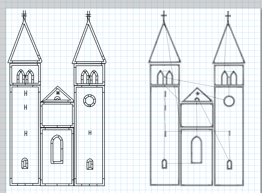 I have reduced the density of stitches from 0,4mm to 0,6mm (peak to peak of zig-zag) for the example to have less stitches. Probably higher density looks better.