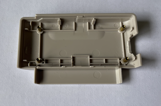 Existing cartridge shell looks like this inside. There's probably a 2-3 mm gap above the components on Lachlan's P2 board to the back surface, so enough room for a custom metal plate. It could also go though to the outside of the plastic at the back with fins in the worst case. But ideally it could retain the same external size for a cleaner look.
