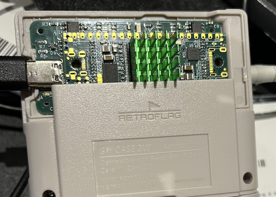 Our external power feed resistor has now been cut and it runs the SD card test from inside the GPi case on it's internal Lipo powered 5V supply, with USB-C plugged directly into the cartridge. No more external supply shorting risk.