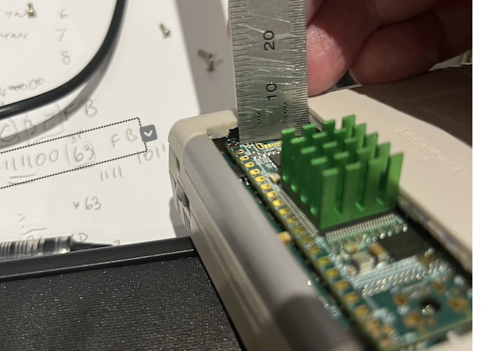 Yeah maybe stainless is not the best option. These pics show the space available after I put the cover on the back that I'd already cut up in the past for the proof of concept design with the P2 edge sticking out. It'd be good to make something fit even if the cover has to be cut to expose to outside airflow etc. Looks like about 3mm from the top surface of the upper P2 board to the underside of the plastic.