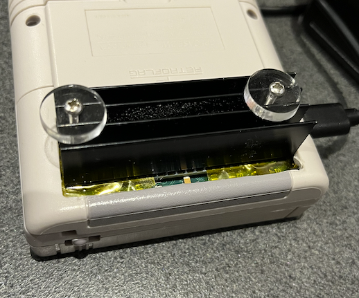 Our external power feed resistor has now been cut and it runs the SD card test from inside the GPi case on it's internal Lipo powered 5V supply, with USB-C plugged directly into the cartridge. No more external supply shorting risk. :smile: