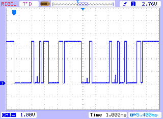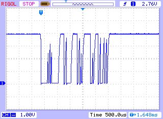 Playing with a TM1637 module (4-digit 7-segment display) from AliExpress, I tried a TM1637 demo and driver I found on the forum from Mr JonnyMac, (massive thanks to Jon for sharing so much, it's really appreciated) but that didn't work for me, after checking all the pin assignments, wiring, voltages etc., I 'scoped the data line and it looked like it was struggling to charge the line fast enough.