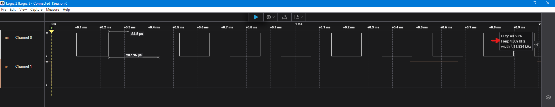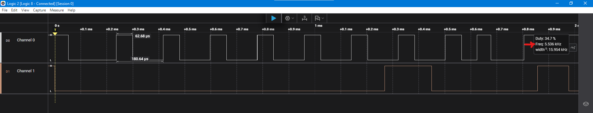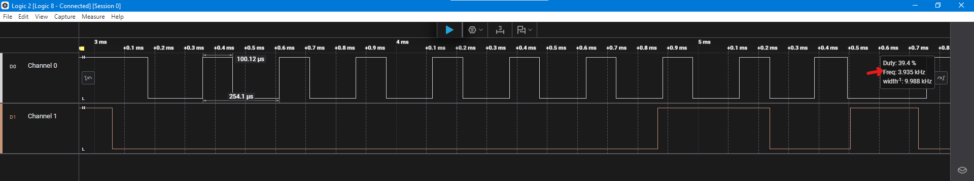 The same program compiled with FlexProp gives a clock about 4.8kHz.