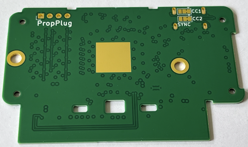 Make the back side GND, behind the Prop2, as gold flashed copper. Then a shaped heat-sink can be neatly pressed onto it for good heat-sinking. And those screw mounts could also be exposed right through to make the heat-sink be a ridged mount too. Have the back of the cartridge be aluminium. Can even give it ribs. Then a fan shouldn't be needed.