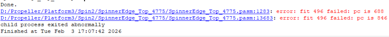 But, can't convert pasm to executable. The error message doesn't say exactly, but I'm pretty sure this is well over the 32 kB that P1 has.