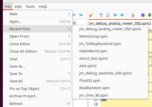 The New file menu was moved to a sub-menu with the items better grouped. There isn't anymore the New item alone which created an empty source (which caused an error for P1 since it doesn't have any Spin method), I think it is better to always start from a template.