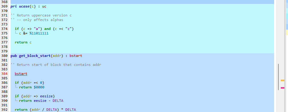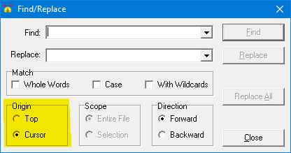 The next time you're looking at the Find/Replace dialog, could you add the start point option as on the Find/Replace option in Propeller Tool? It should default to cursor, of course, but I find it convenient to switch to top when I want to locate a global variable definition. Thanks.