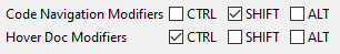 For my own use I've found these settings best for the Code Navigation and Hover Doc modifiers