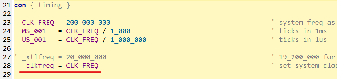 Before you get going you have to tell the P2 how fast to run. CLK_FREQ is a [user defined] constant. _clkfreq is the directive that actually sets the P2 speed. In my template I create CLK_FREQ so that I don't have to read the system variable clkfreq, and so I can derive MS_001 and US_001 constants for waitct() used in synchronized delays.