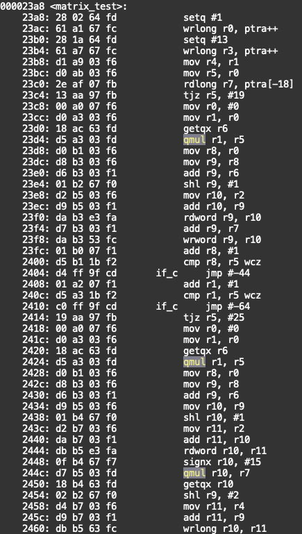 then the compiler's optimizer thinks it could reorder the instruction affecting the r3 destination register independently because it doesn't know it actually (indirectly) still depends on r1 & r2 from the QMUL. Maybe that needs to be somehow specified in the instruction definitions if it's not already being done.