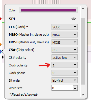 Remember to set CPOL back to 0 in the SPI protocol analyzer settings.