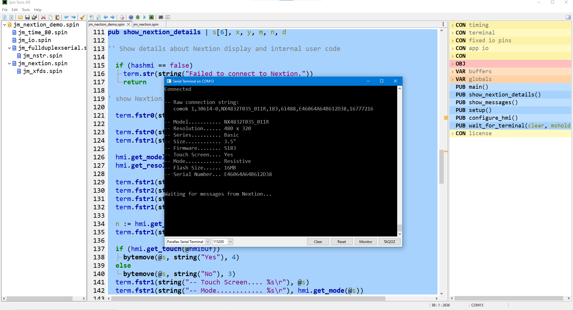 For my projects I have a Nextion variable called himVer. There is code in the demo that is commented out that shows you what I do with this variable. It allows my Px app to know it has the correct version of the Nextion HMI code.